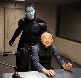 Even though my debate fashion tips were ignored, Obama accounted for himself fairly well. National consensus is a tie. Grumpy McBush refusing ever to even glance a squinty-eyed peek at Obama; hunched, grinning malevolently like Heath Ledger’s The Joker, old raspy voice an “I-told-you” scold, short arms punching and pounding ancient air released from a dusty canister of Kissinger and Schultz. Obama, upright and straight-eyed, a thin, sleek and tall modern avatar of avant-garde Apollonian authority, spoke in a slow modulated and precise, yet lofty graduate school reading level. (A transcription of McBush’s sentences would yield a lower, yet more translatable to average American dumbed-down ears, 5th grade reading level.)