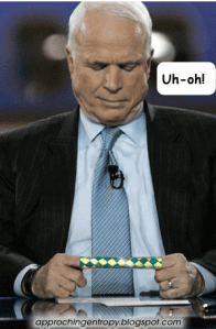 McCain failed to wear a flag pin. Either he forgot or he arrogantly assumed that his POW experience gave him a patriot pass. I assume he doesn’t love America as much as Obama.